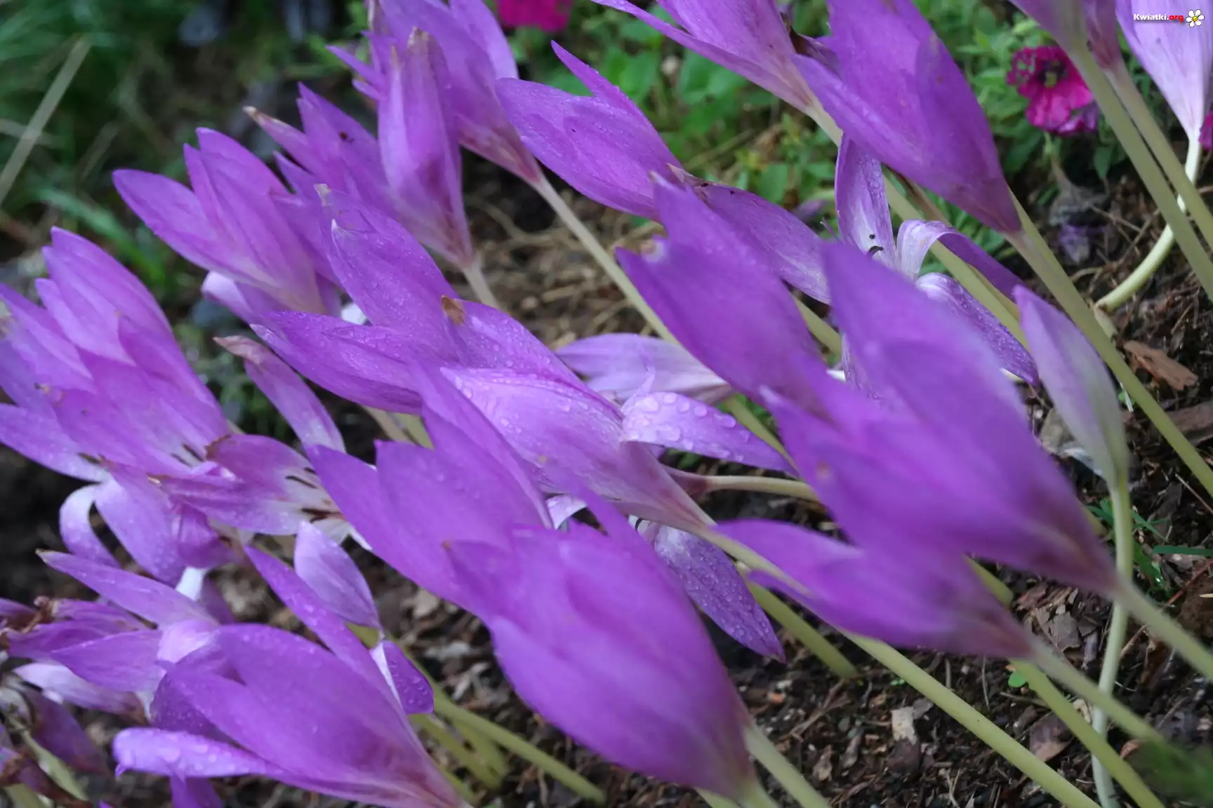 Fioletowe, Kwiaty, Krople - Zdjęcia