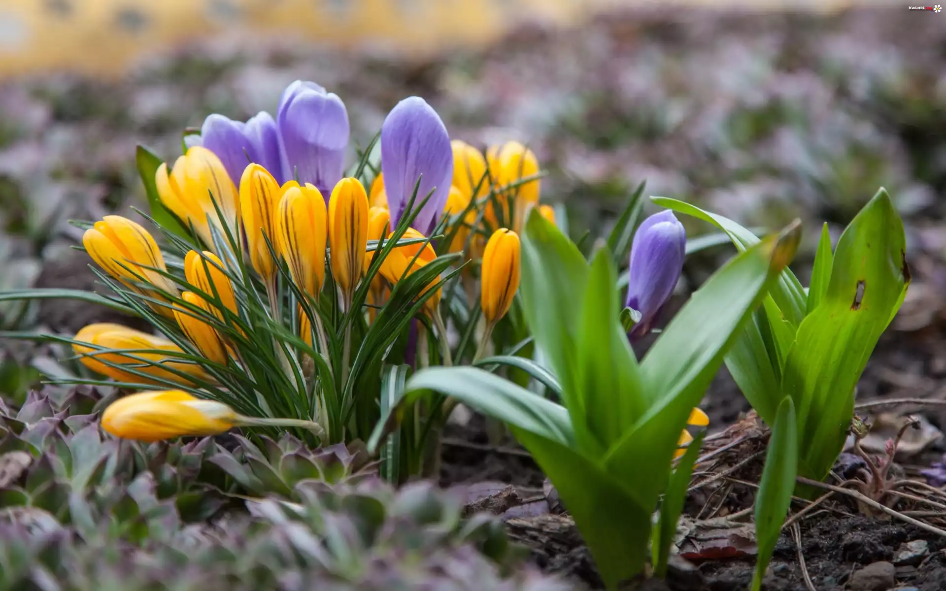 Żółte, Fioletowe, Kwiaty, Krokusy - Zdjęcia