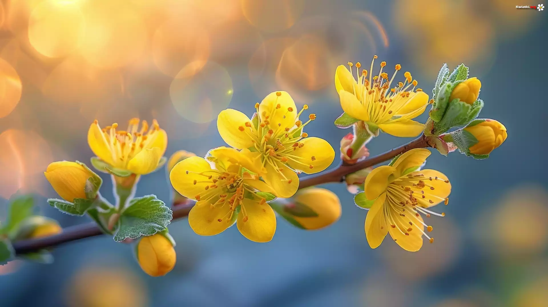 Żółte, Kwiaty, Gałąź, Pąki, Zbliżenie - Zdjęcia