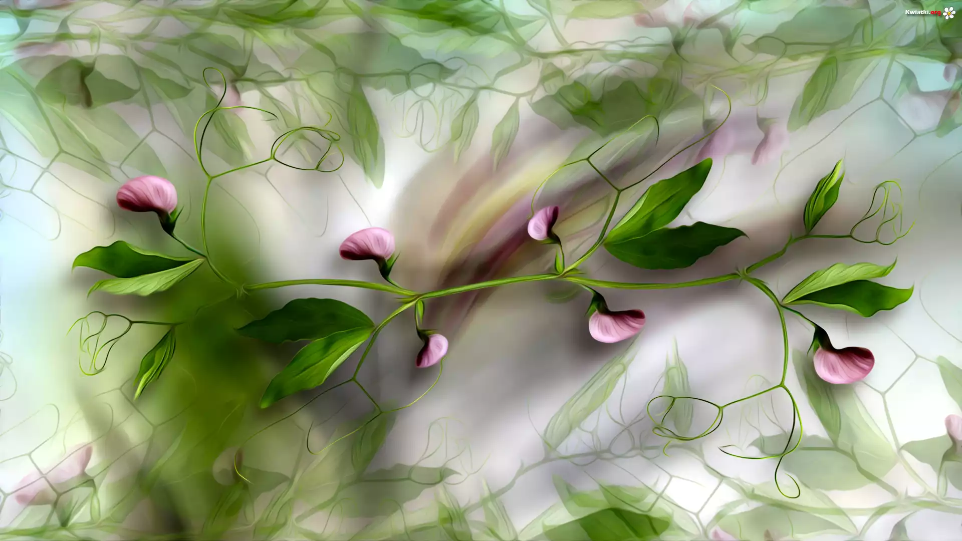 Gałązka, Kwiaty, Groszek pachnący, Pąki, Liście, Grafika - Zdjęcia