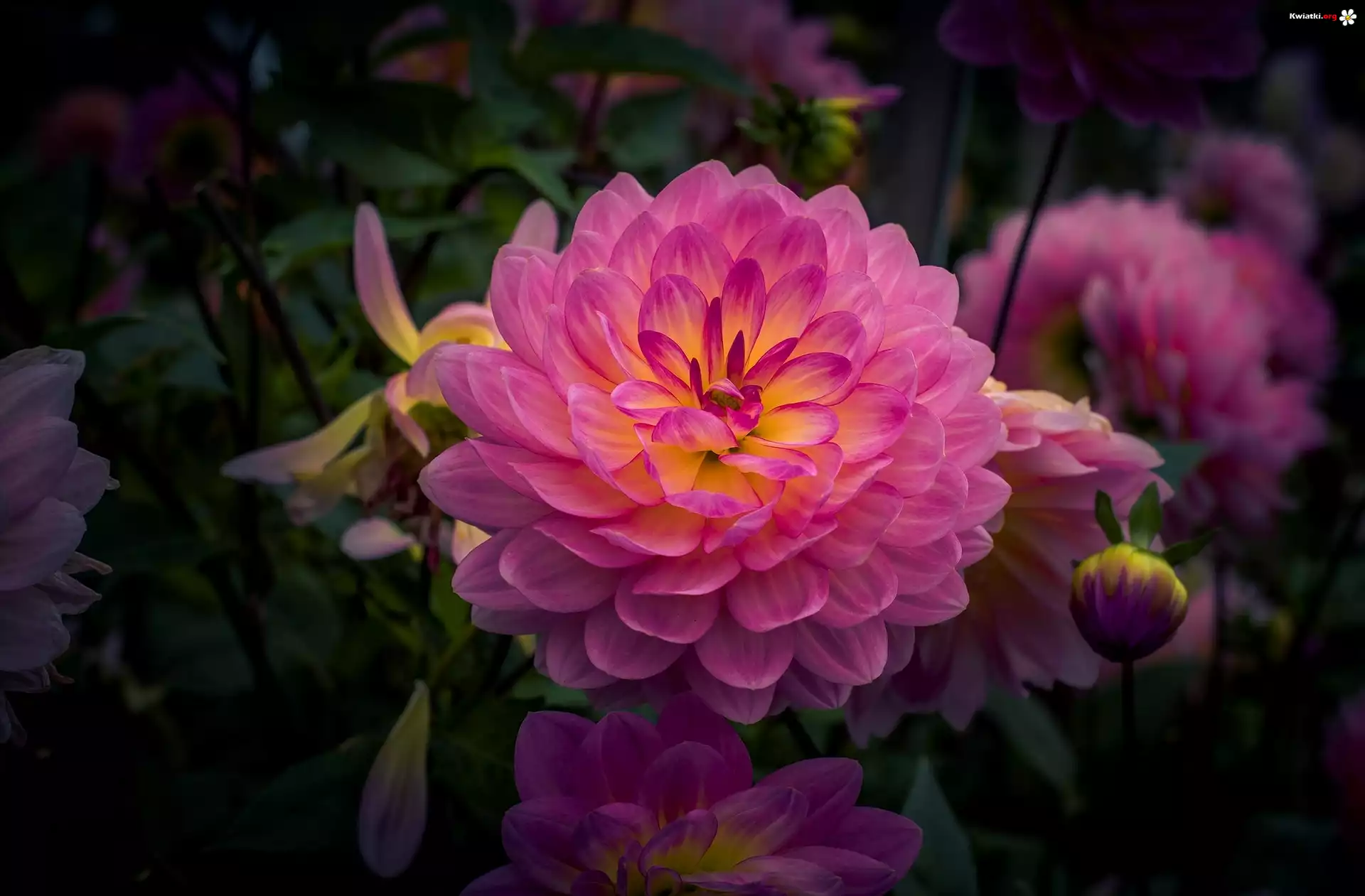 Fioletowa, Dalia Dalia Trzmiel, Na, Żółtej, Dalii Dwukolorowa, Dalia Kolorowe, Dalie Czerwona, Dalia Kolorowe, Dalie Rozwinięte, Dalie Kwiat, Dalia, Pąk, Liście Czerwone, Dalie Różowa, Dalia Dalia, Pąk Fontanna, Woda, Kwiaty Różowe, Dalie