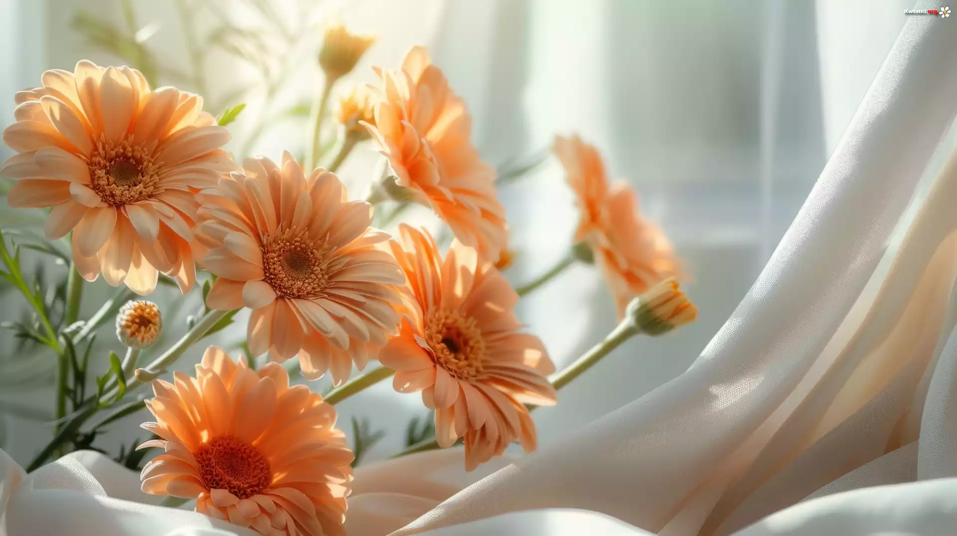 Kwiaty, Jasnopomarańczowe, Gerbery - Zdjęcia