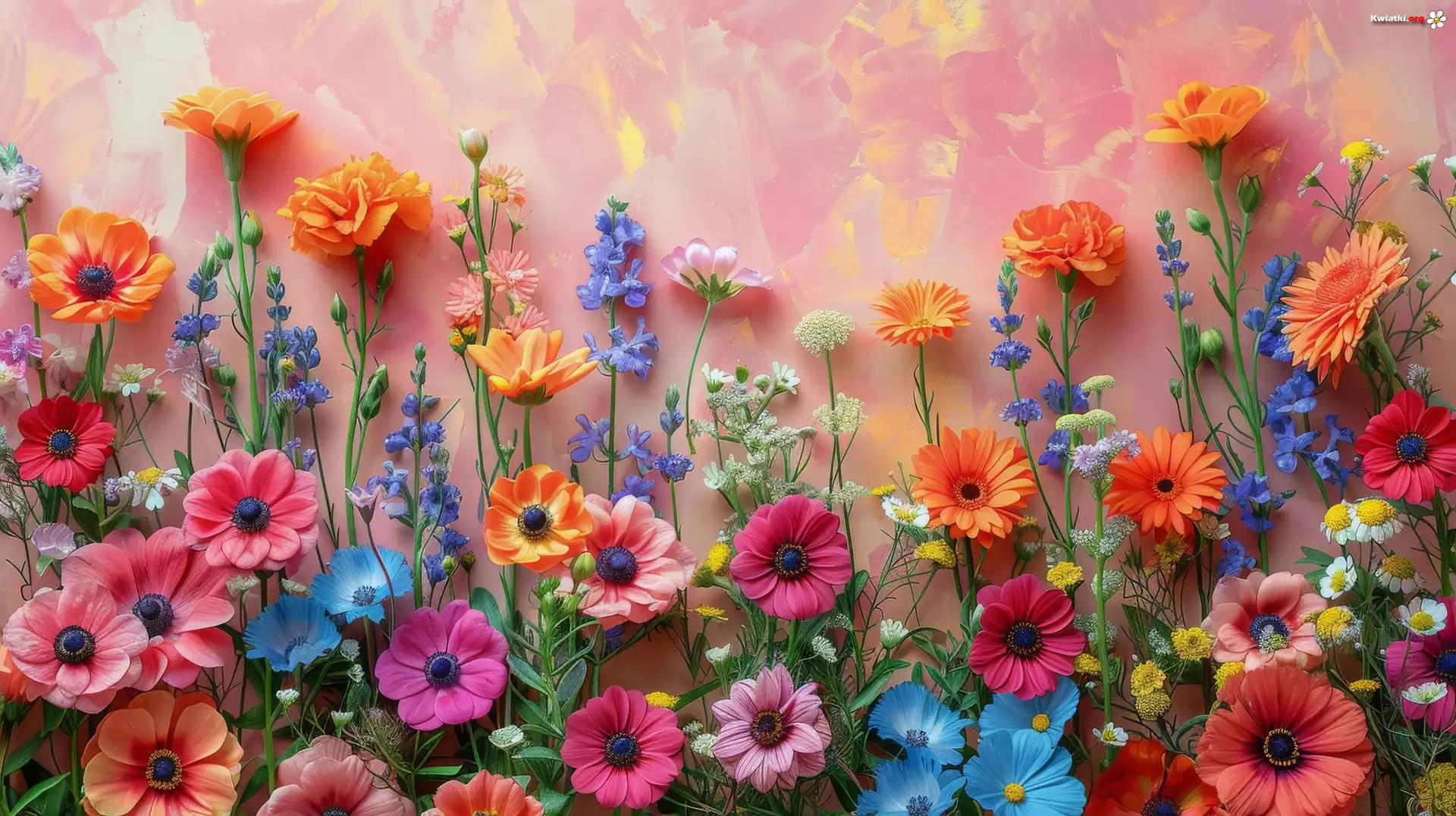Kolorowe, Kwiaty, Gerbery, Tło, Kompozycja - Zdjęcia