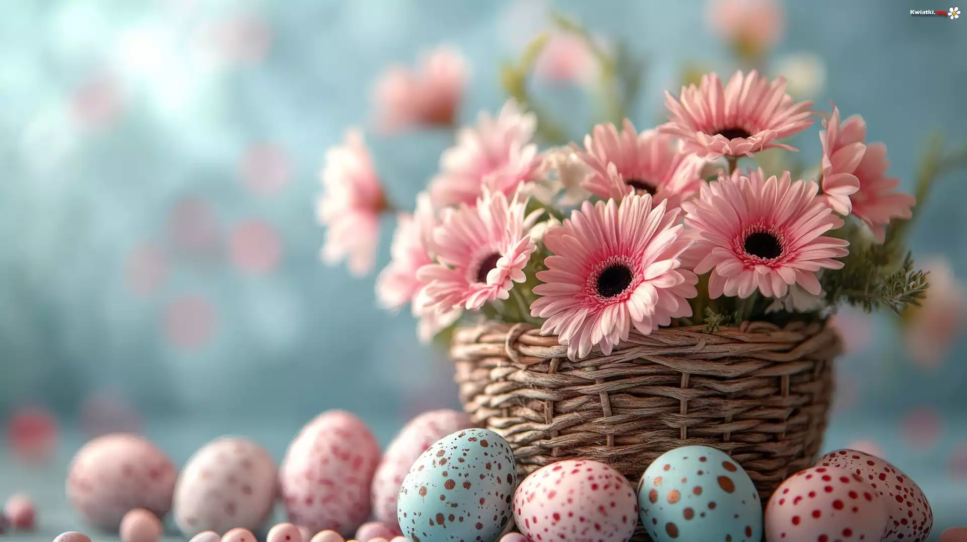 Kwiat Wielkanoc, Kwiaty, Gerbery, Pisanki, Koszyk