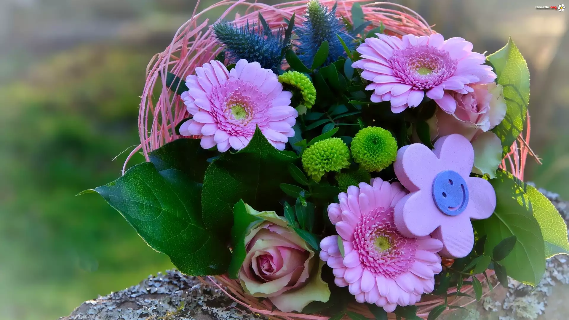 Kwiat Kwiaty, Bukiet, Róża, Gerbery, Ozdoba