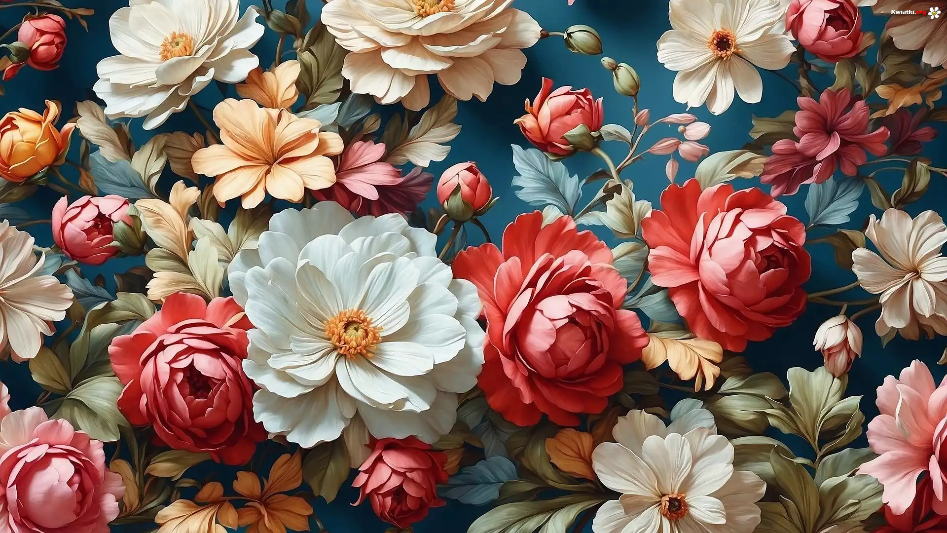 Grafika, Czerwone, Białe, Kwiaty - Zdjęcia