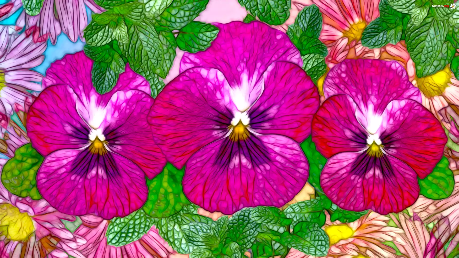 Kwiaty, Listki, Bratki, Grafika, Fractalius - Zdjęcia