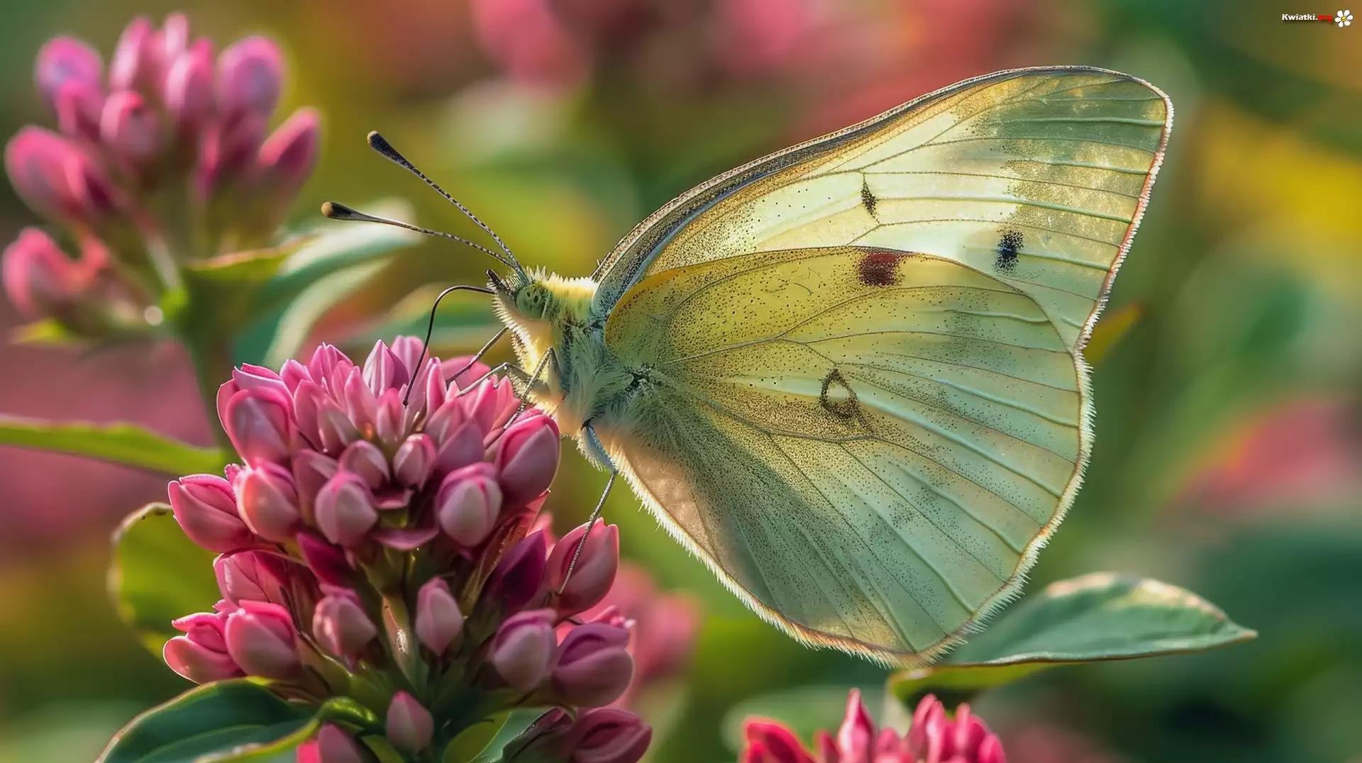 Kwiat Motyl, Bielinek kapustnik, Kwiaty, Światło, Grafika