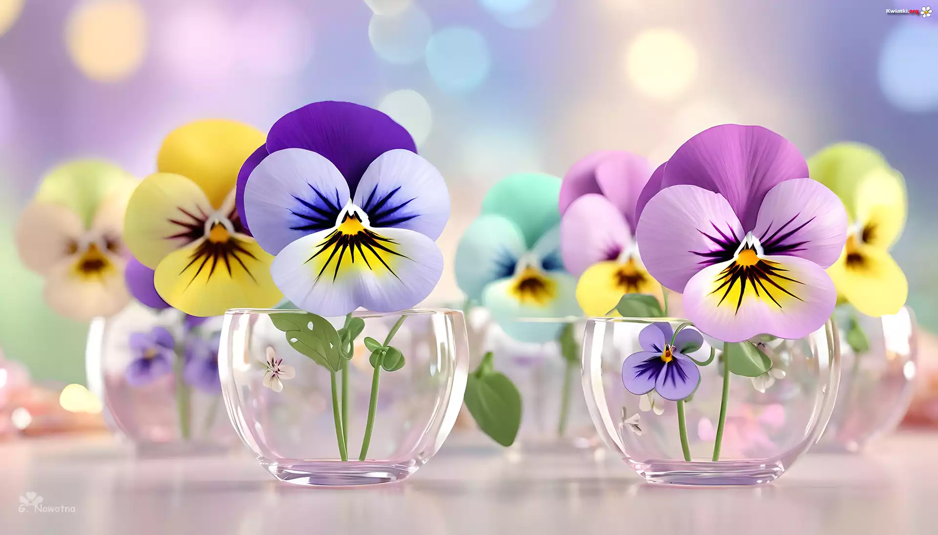 Bratki, Kwiaty, Grafika, Szklane, Naczynia - Zdjęcia