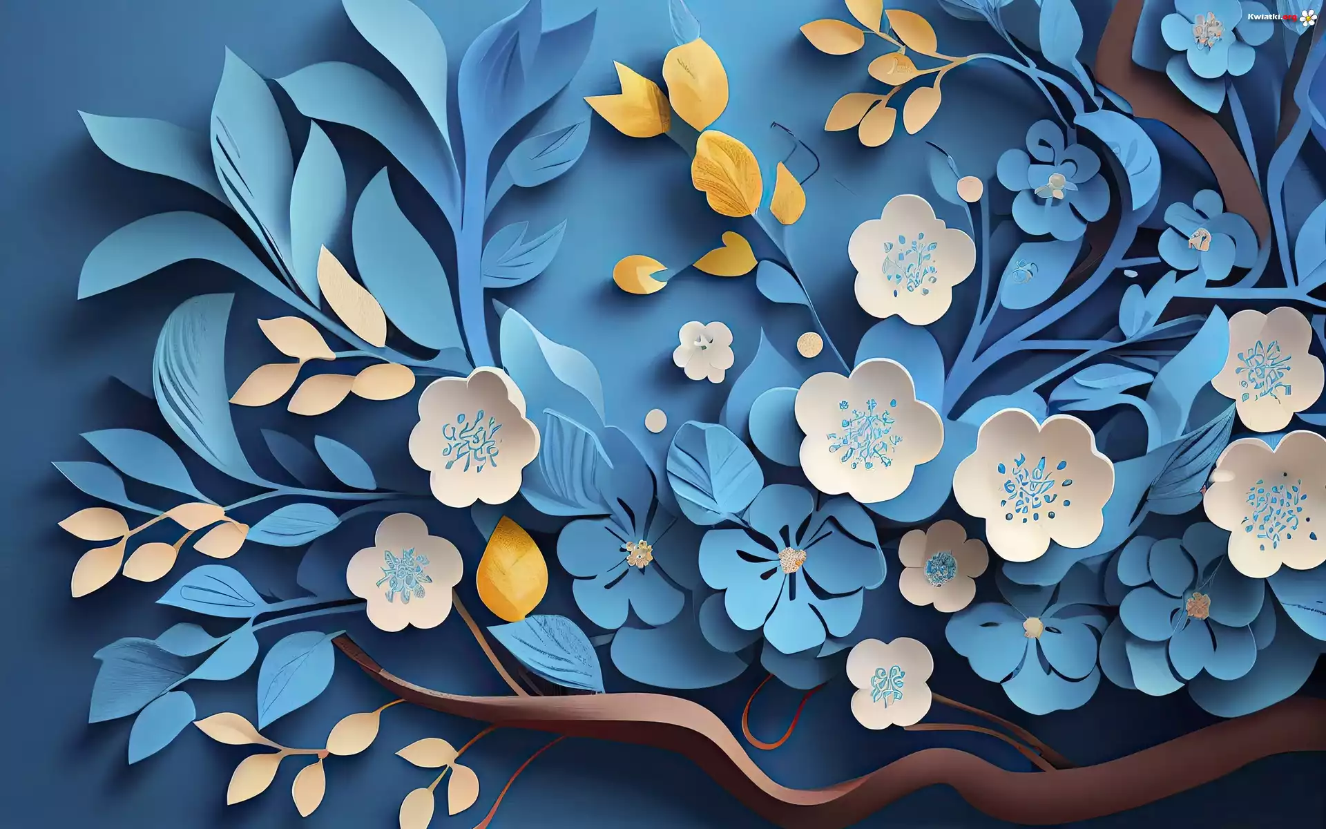 Grafika, Biało-niebieskie, Kwiaty - Zdjęcia