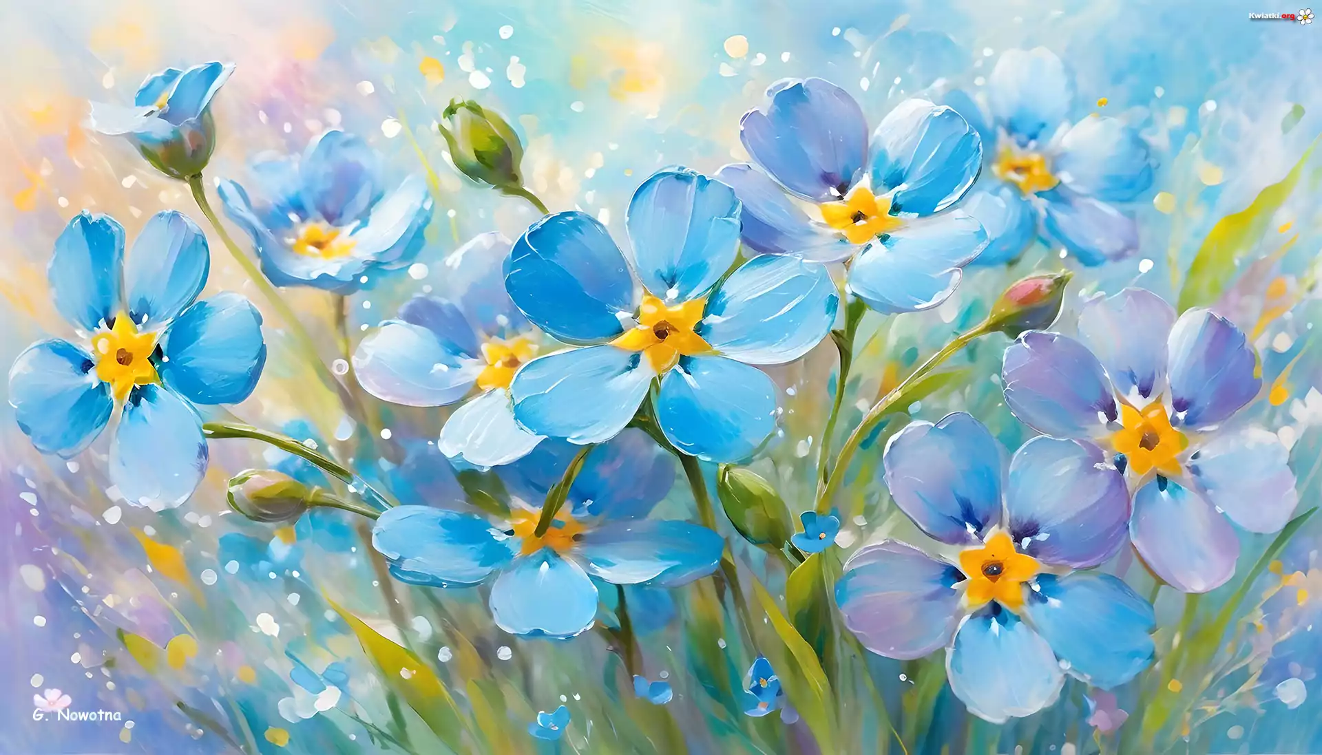 Kwiat Grafika, Niezapominajki, Niebieskie, Kwiaty