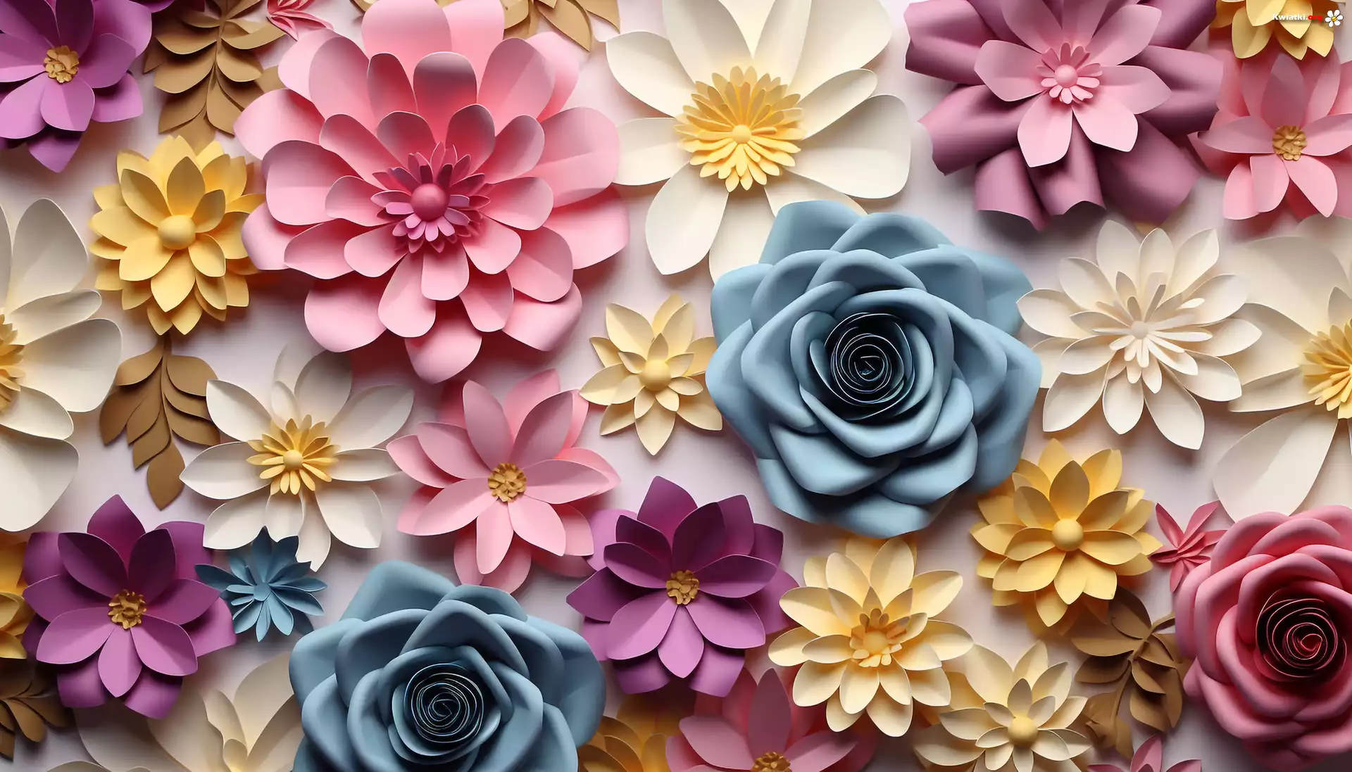 Grafika, Kolorowe, Papierowe, Kwiaty - Zdjęcia