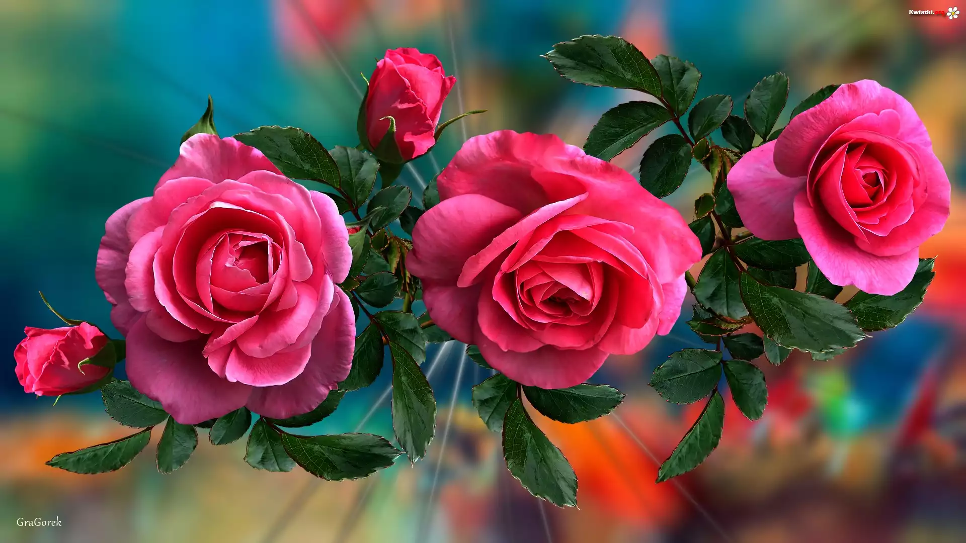 Kwiaty, Trzy, Róże, Liście, Grafika 2D - Zdjęcia