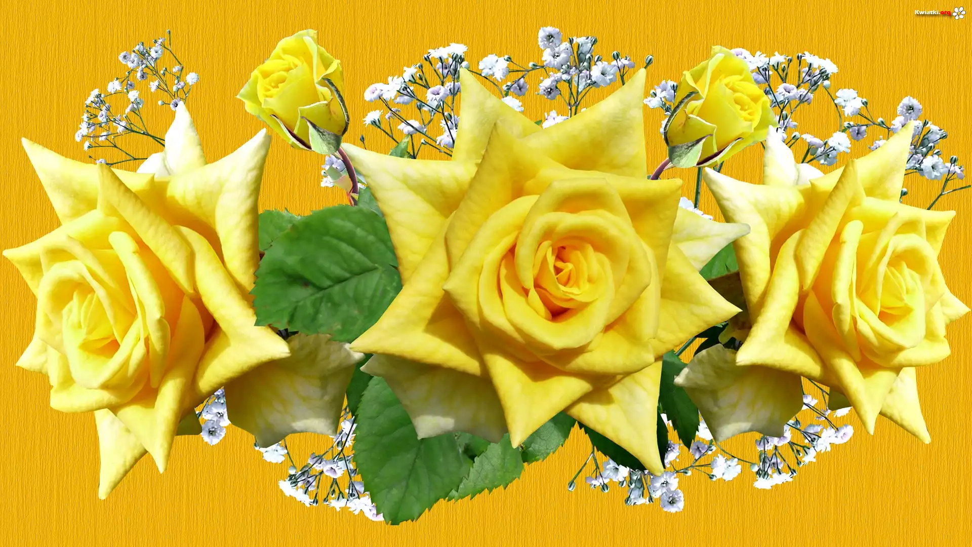 Kwiaty, Żółte, Róże, Tło, Grafika 2D - Zdjęcia