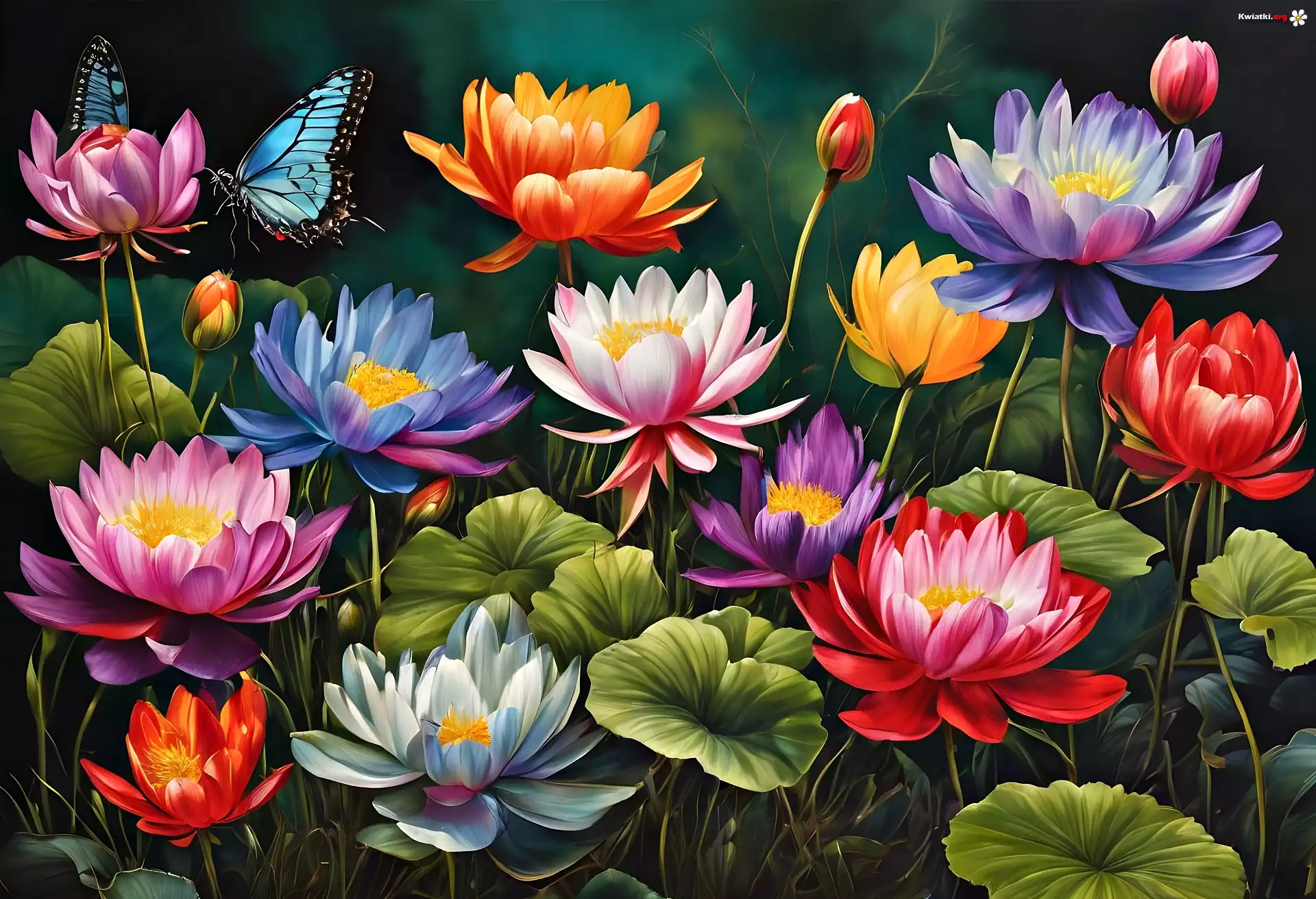 Różne, Kolorowe, Rozwinięte, Kwiaty, Motyle, Grafika - Zdjęcia