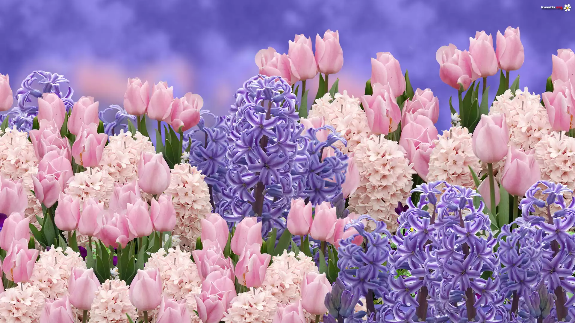 Kwiaty, Fioletowe, Różowe, Hiacynty, Tulipany - Zdjęcia