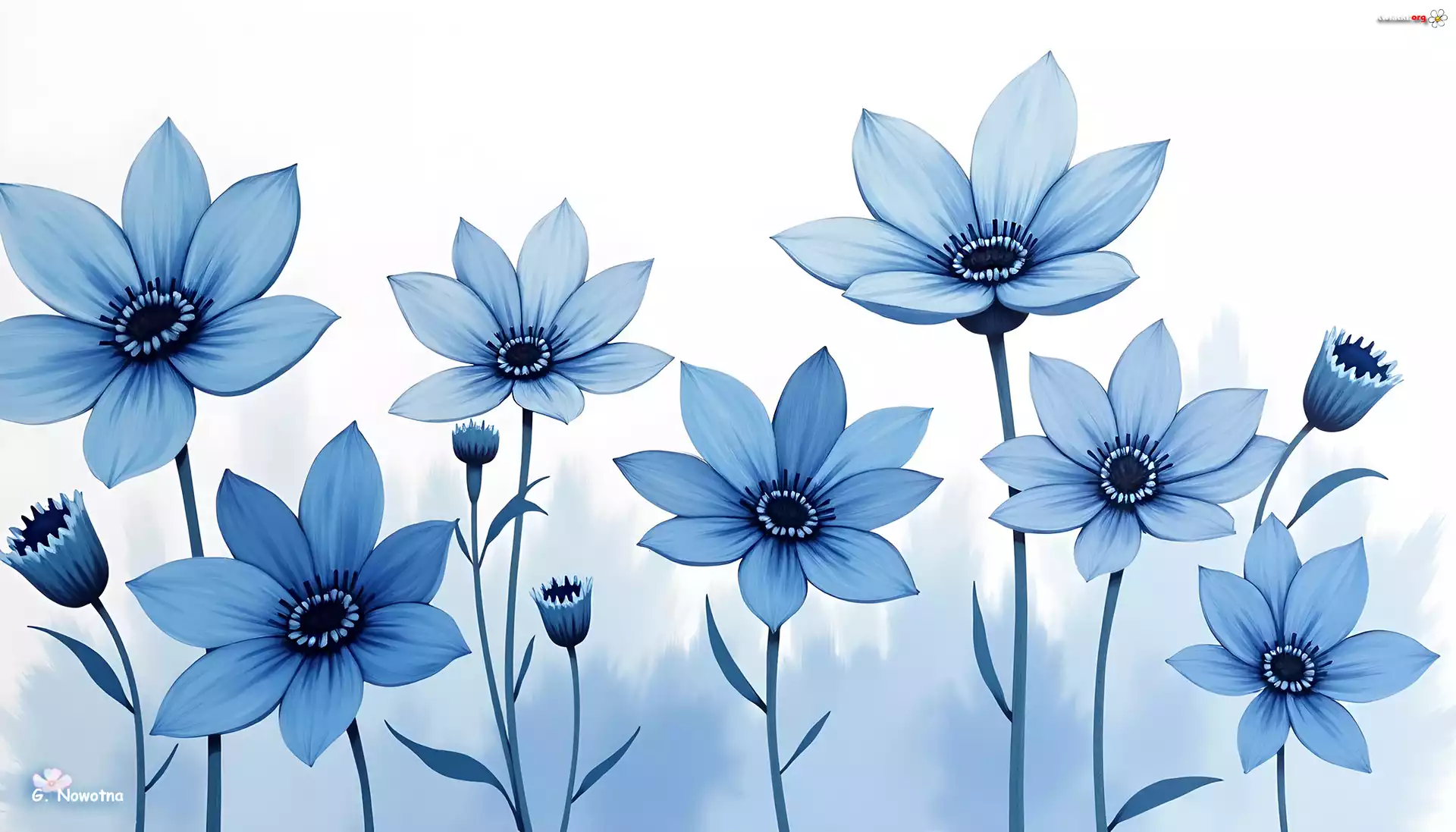 Niebieskie, Kwiaty, Jasne, Tło, Grafika - Zdjęcia