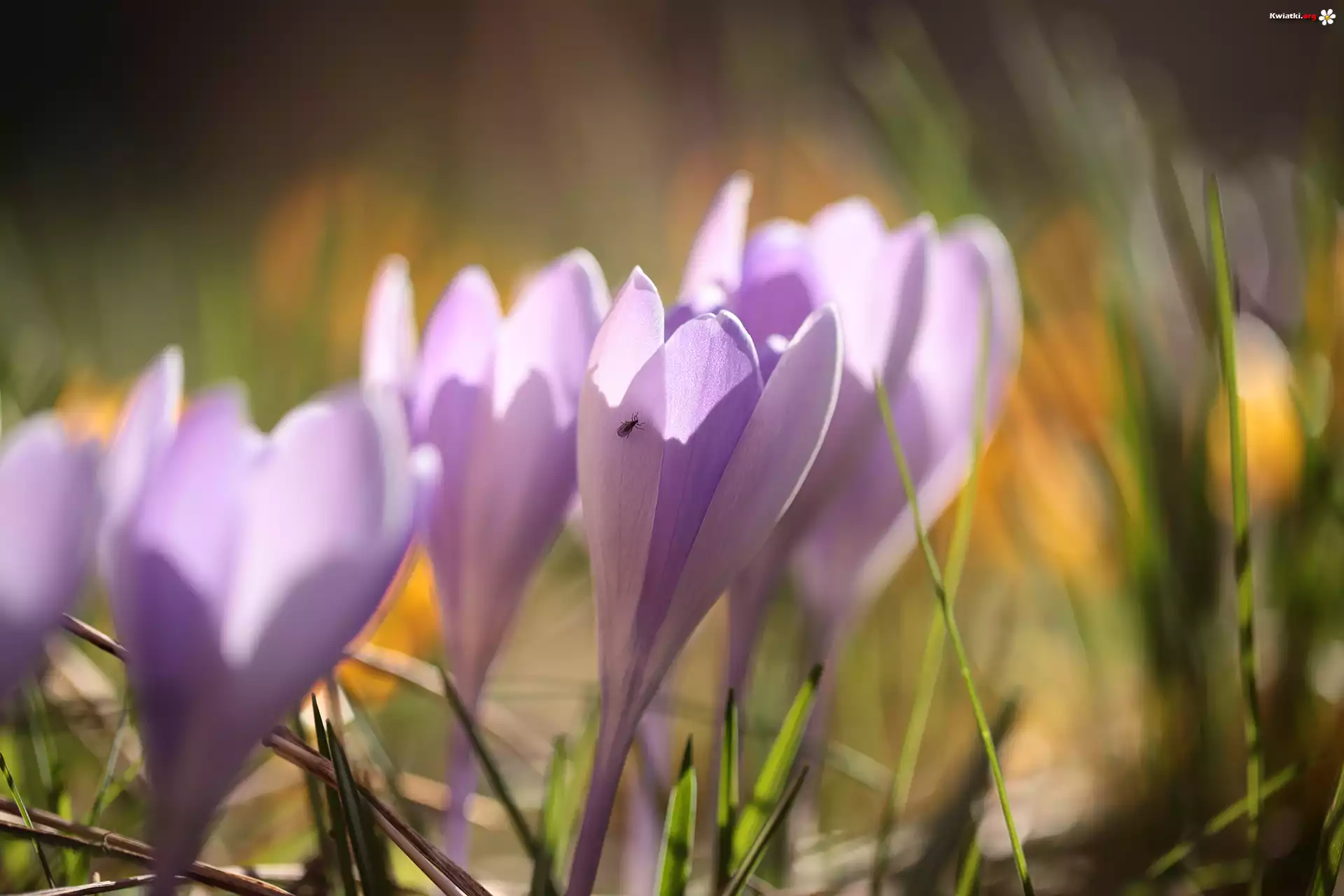 Kwiat Jasnofioletowe, Krokusy, Rozświetlone, Kwiaty