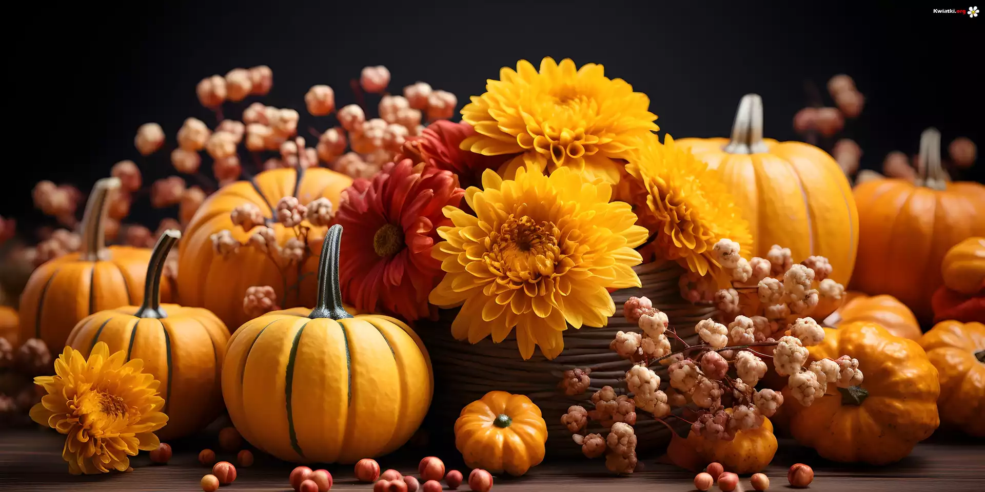 Dynie, Kwiaty, Jesienna, Kompozycja, Grafika - Zdjęcia
