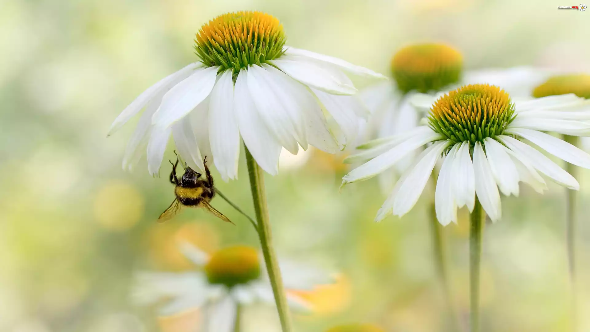 Kwiaty, Białe, Jeżówki, Pszczoła - Zdjęcia