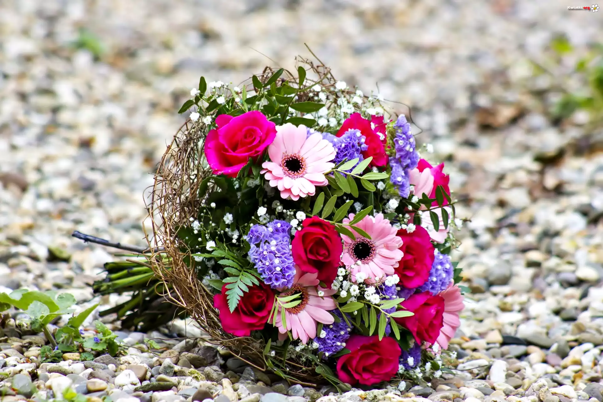 Kwiat Kwiaty, Róże, Kamienie, Bukiet