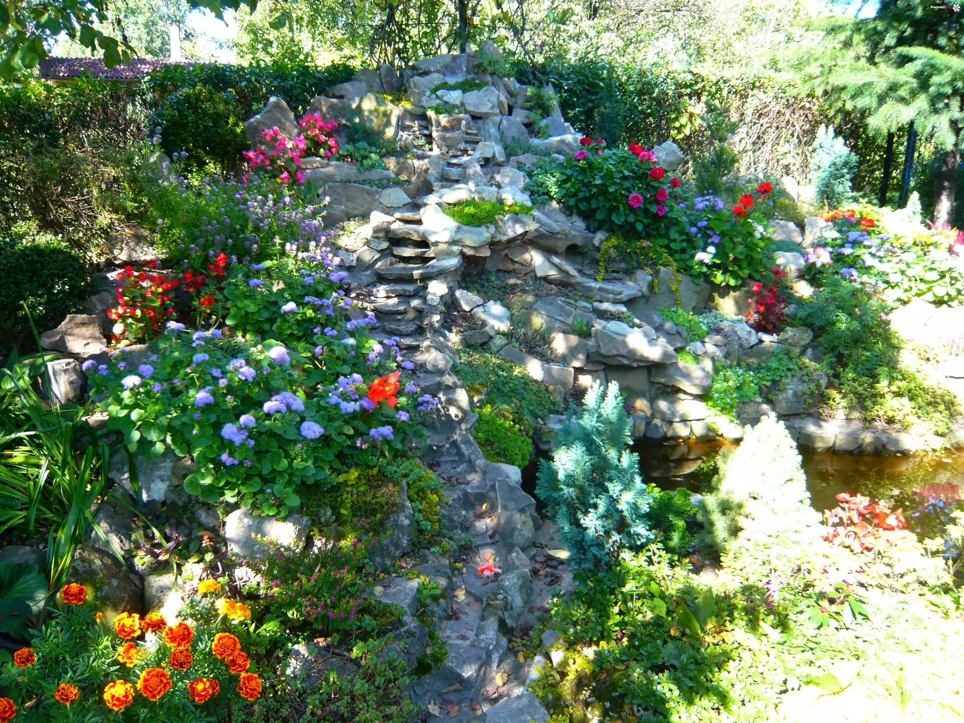 Kamienie, Kwiaty, Woda - Zdjęcia