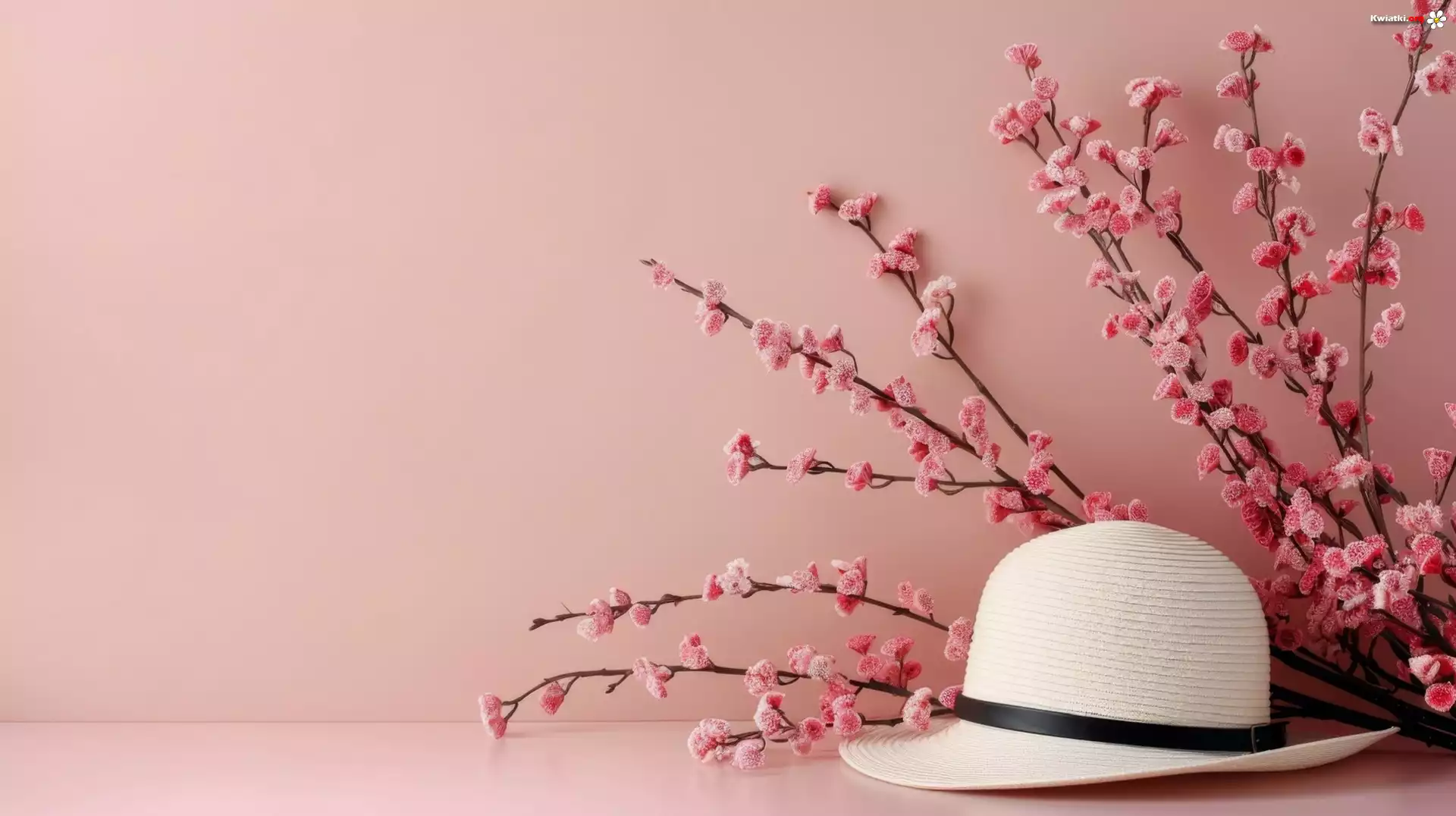 Kapelusz, Gałązki, Różowe, Kwiaty - Zdjęcia