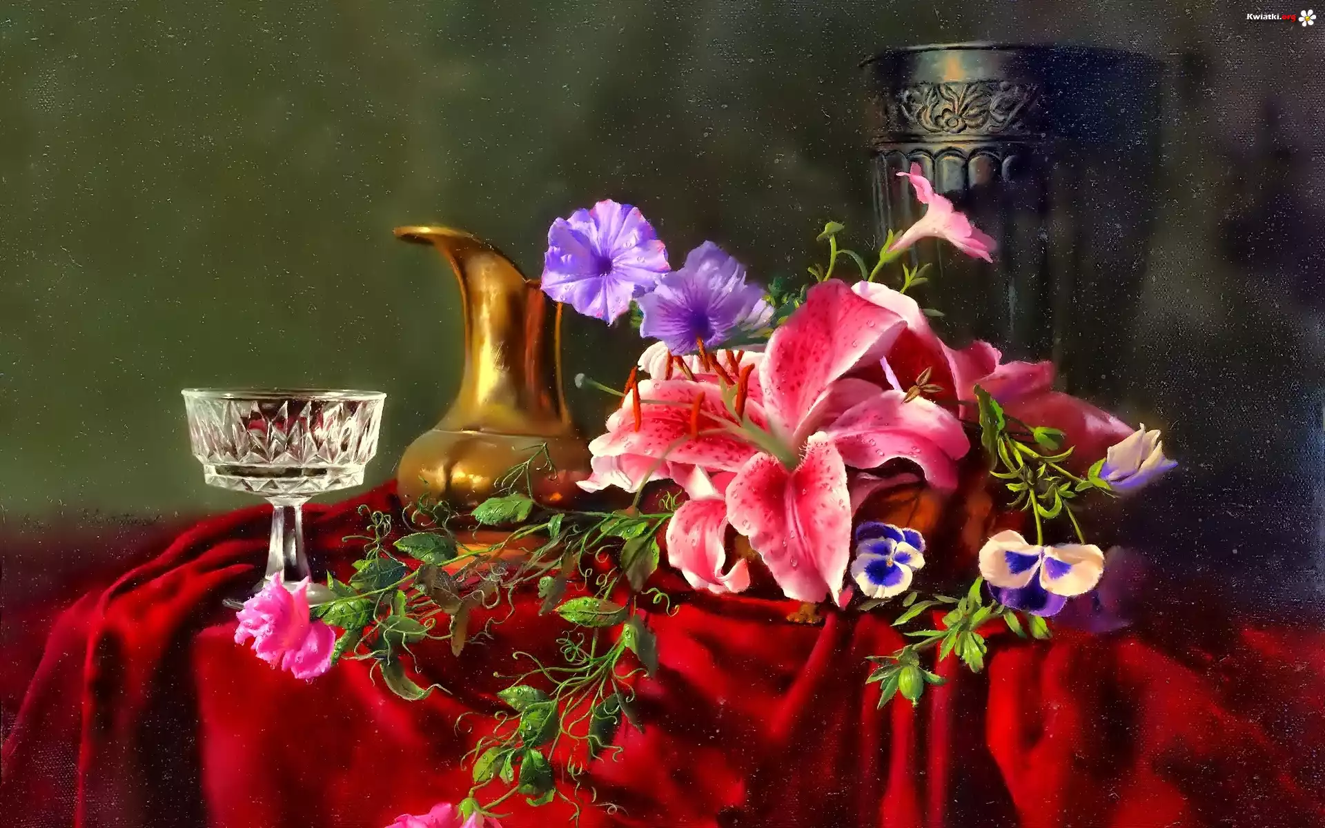 Kwiaty, Lilia, Kieliszek, Dzbanuszek - Zdjęcia