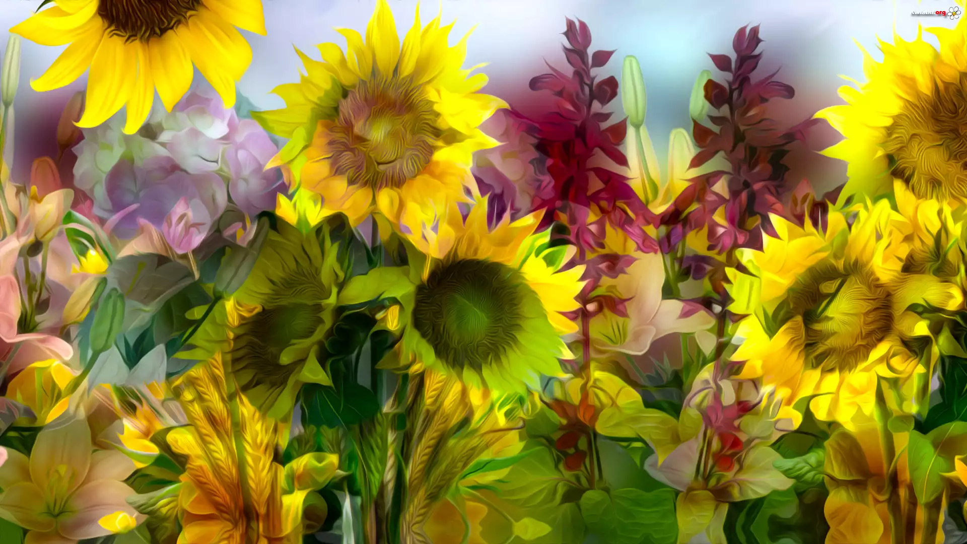 Kwiaty, Słoneczniki, Kłosy, Grafika - Zdjęcia