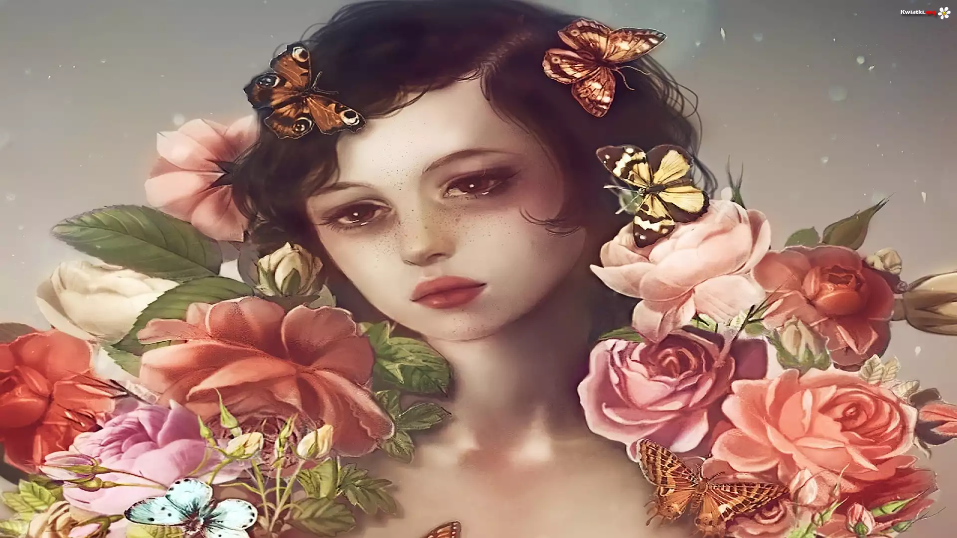 Kobieta, Kwiaty, Motyle - Zdjęcia