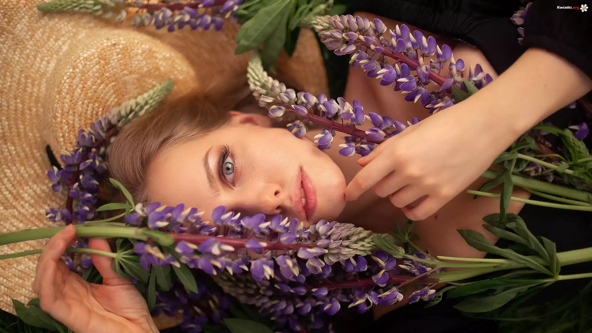 Kobieta, Kwiaty, Łubin - Zdjęcia