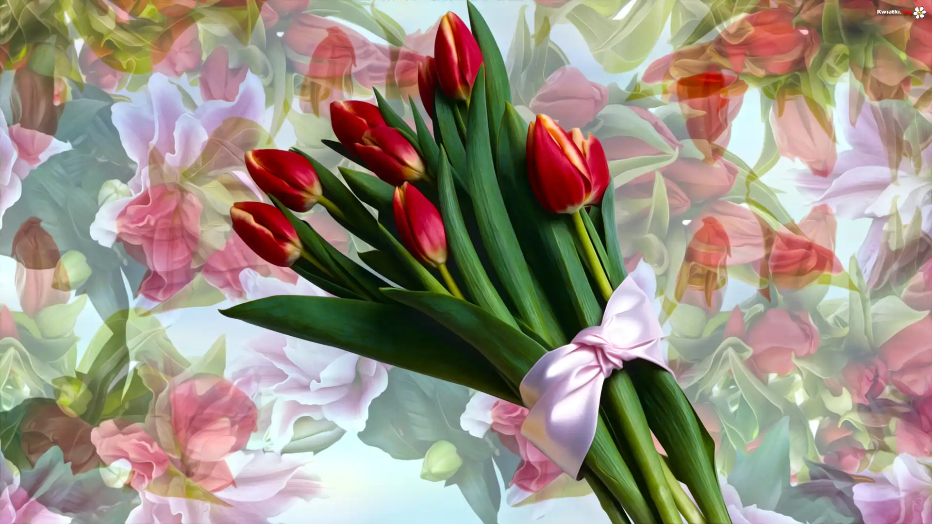 Kwiaty, Tulipany, Bukiet, Kokarda, Grafika - Zdjęcia
