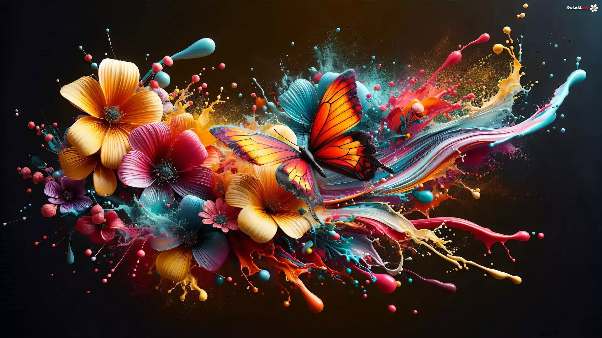 Grafika, Kwiaty, Kolorowe, Motyl, Farby - Zdjęcia