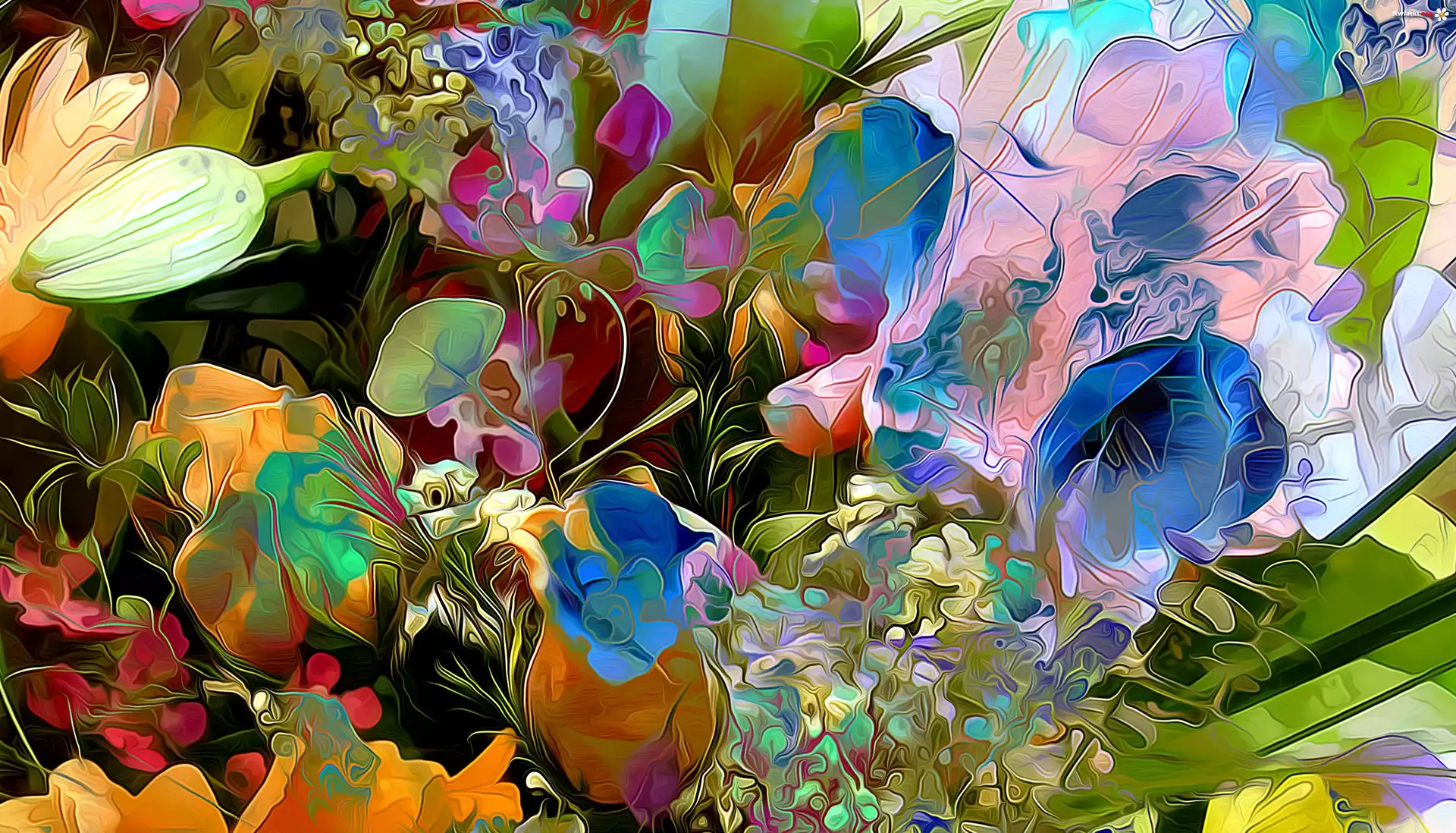 Kolorowe, Kwiaty, Fractalius - Zdjęcia