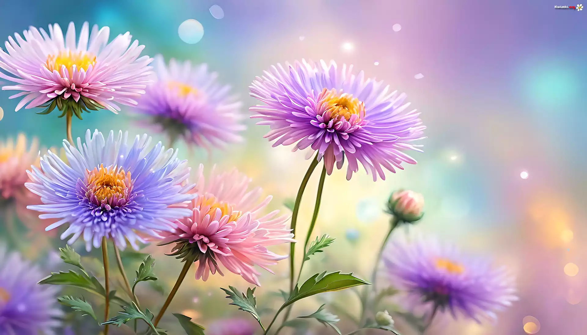 Kolorowe, Astry, Grafika, Kwiaty - Zdjęcia