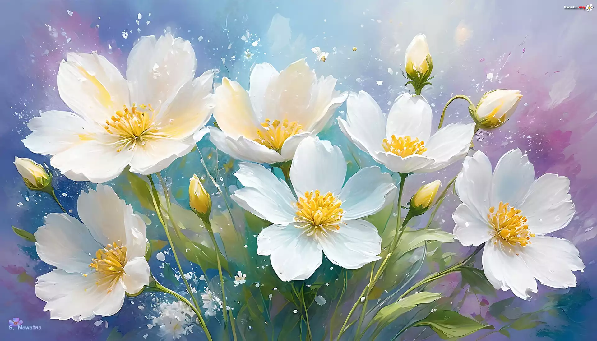 Białe, Kwiaty, Kolorowe, Tło, Grafika - Zdjęcia