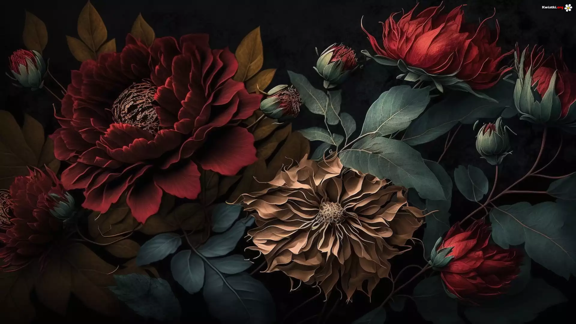 Grafika, Kwiaty, Kolorowe, Pąki, Liście - Zdjęcia