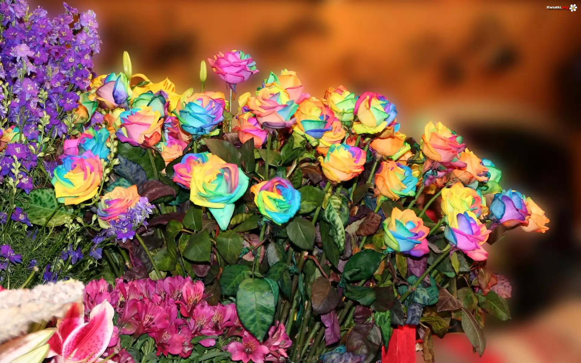 Kwiaty, Bukiet, Kolorowych, Róż - Zdjęcia