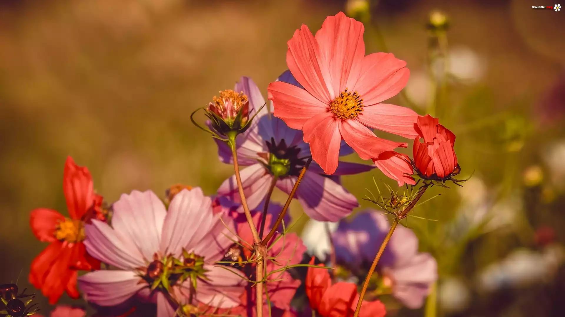 Czerwone, Kwiaty, Kosmea - Zdjęcia