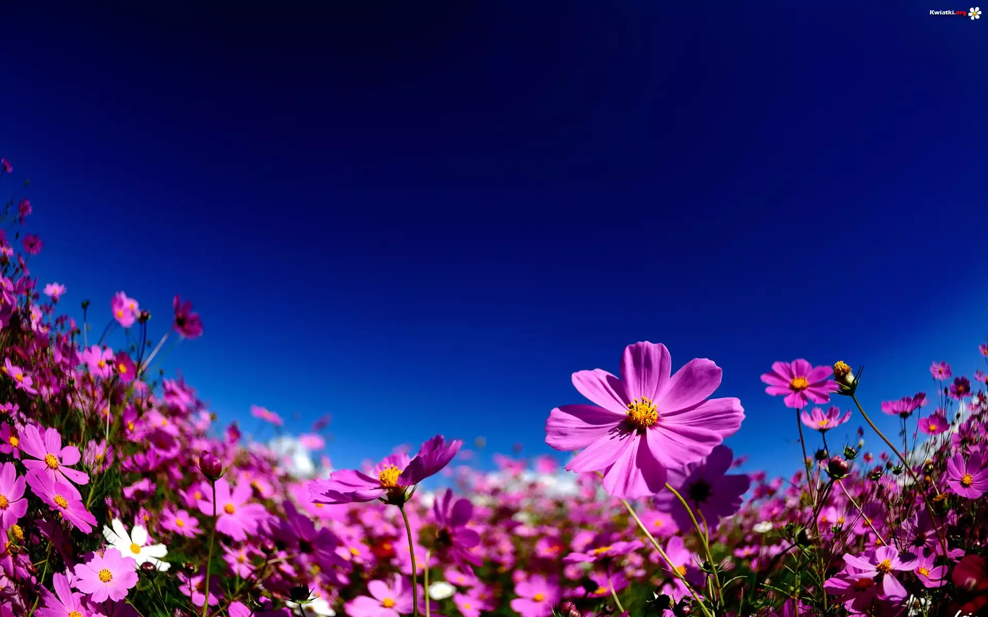 Kwiaty, Różowe, Kosmea, Niebo - Zdjęcia