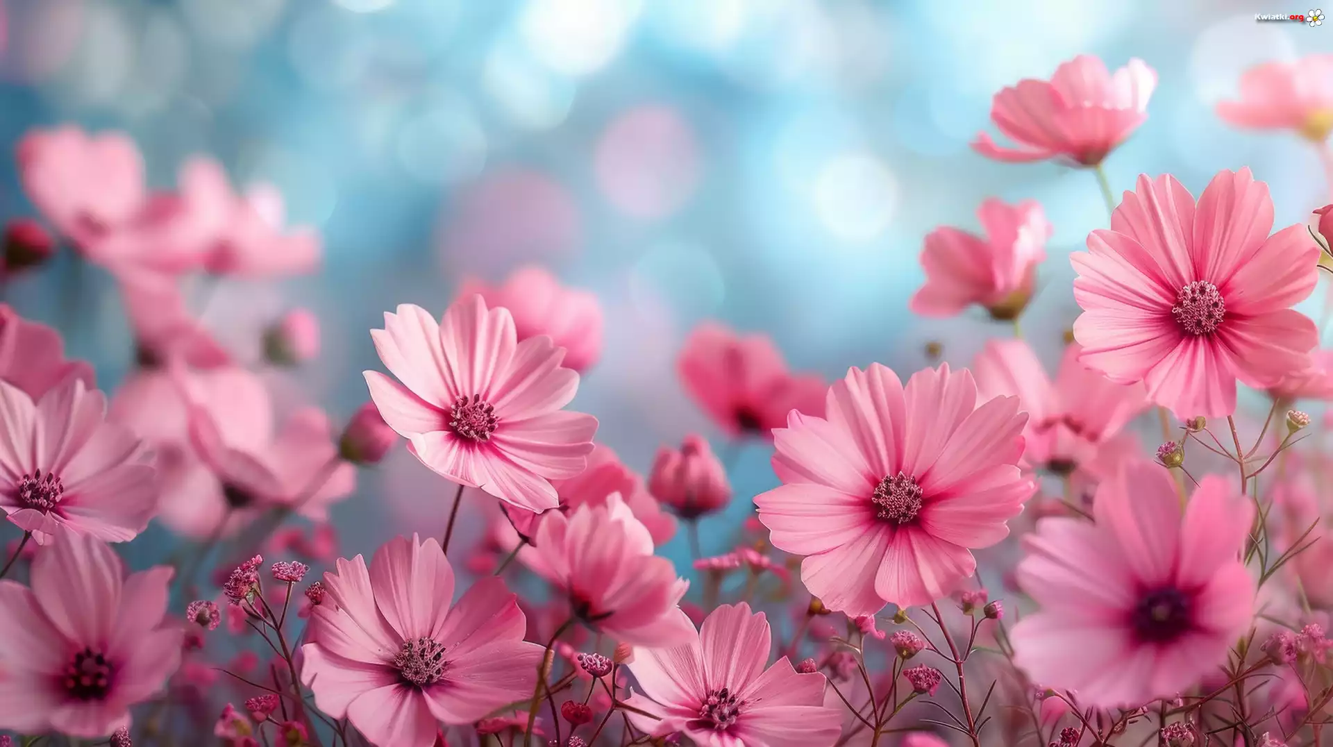 Różowe, Kwiaty, Kosmee, Niebieskie, Tło - Zdjęcia