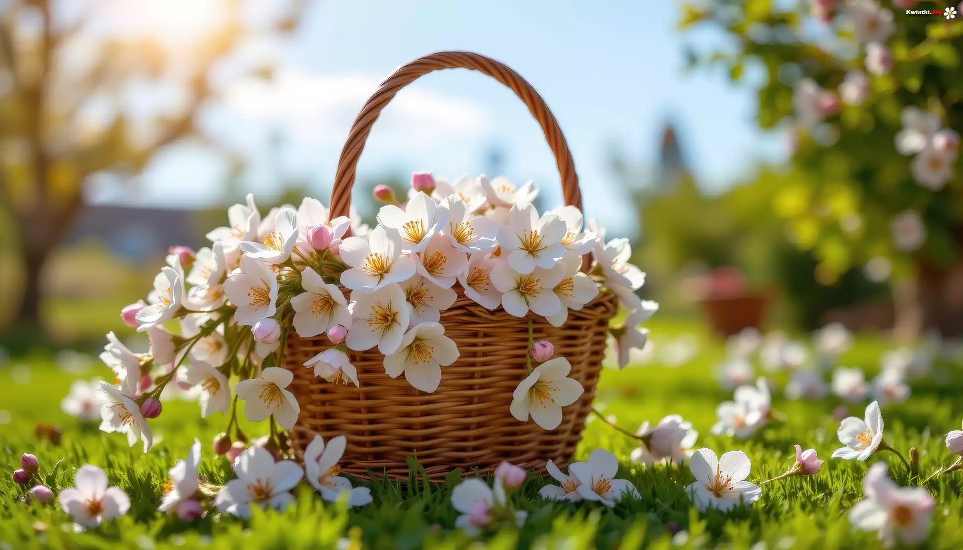 Białe, Różowe, Drobne, Kwiaty, Wiklinowy, Koszyk - Zdjęcia