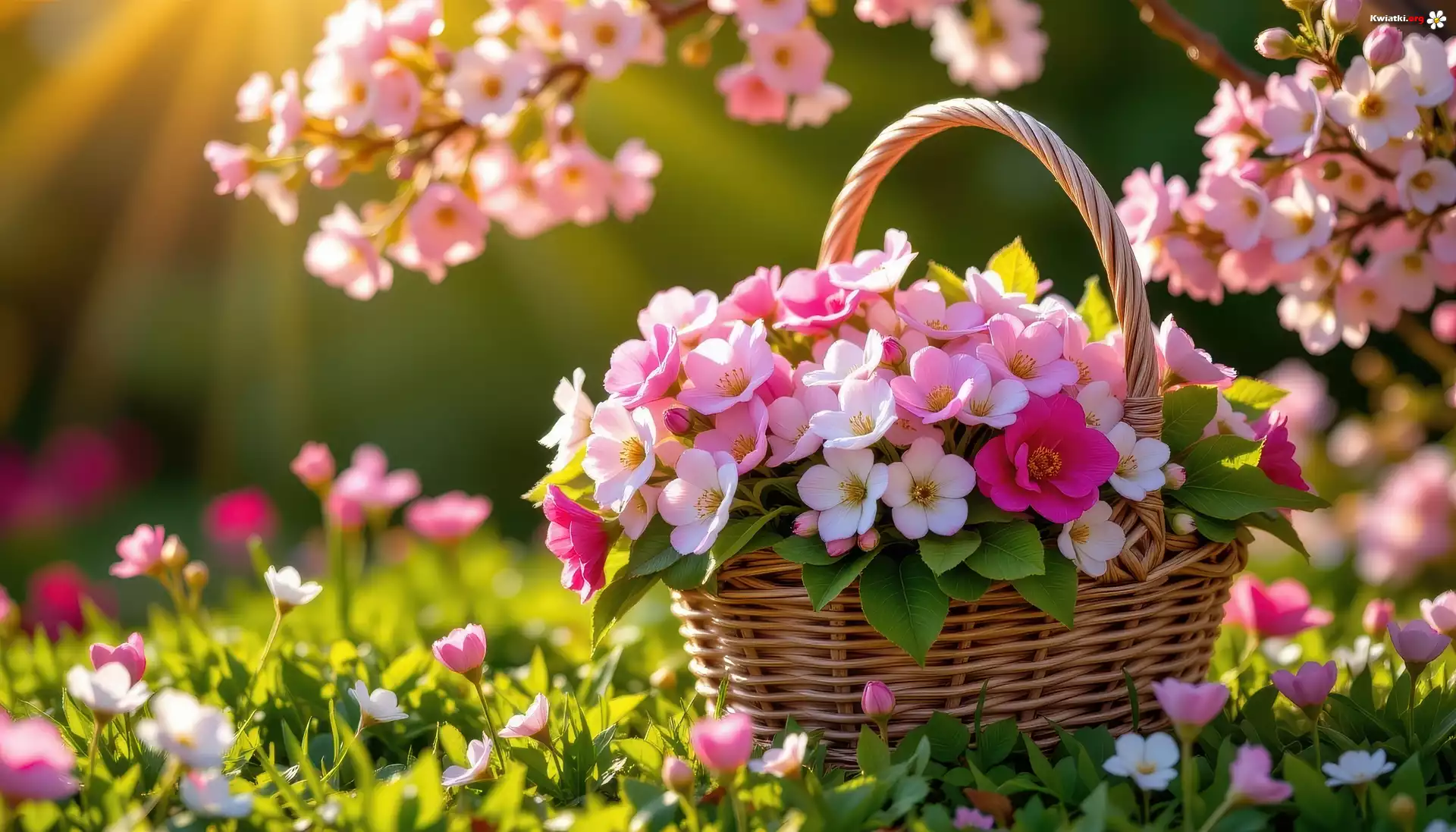 Kolorowe, Kwiaty, Koszyk, Ukwiecone, Gałązki - Zdjęcia