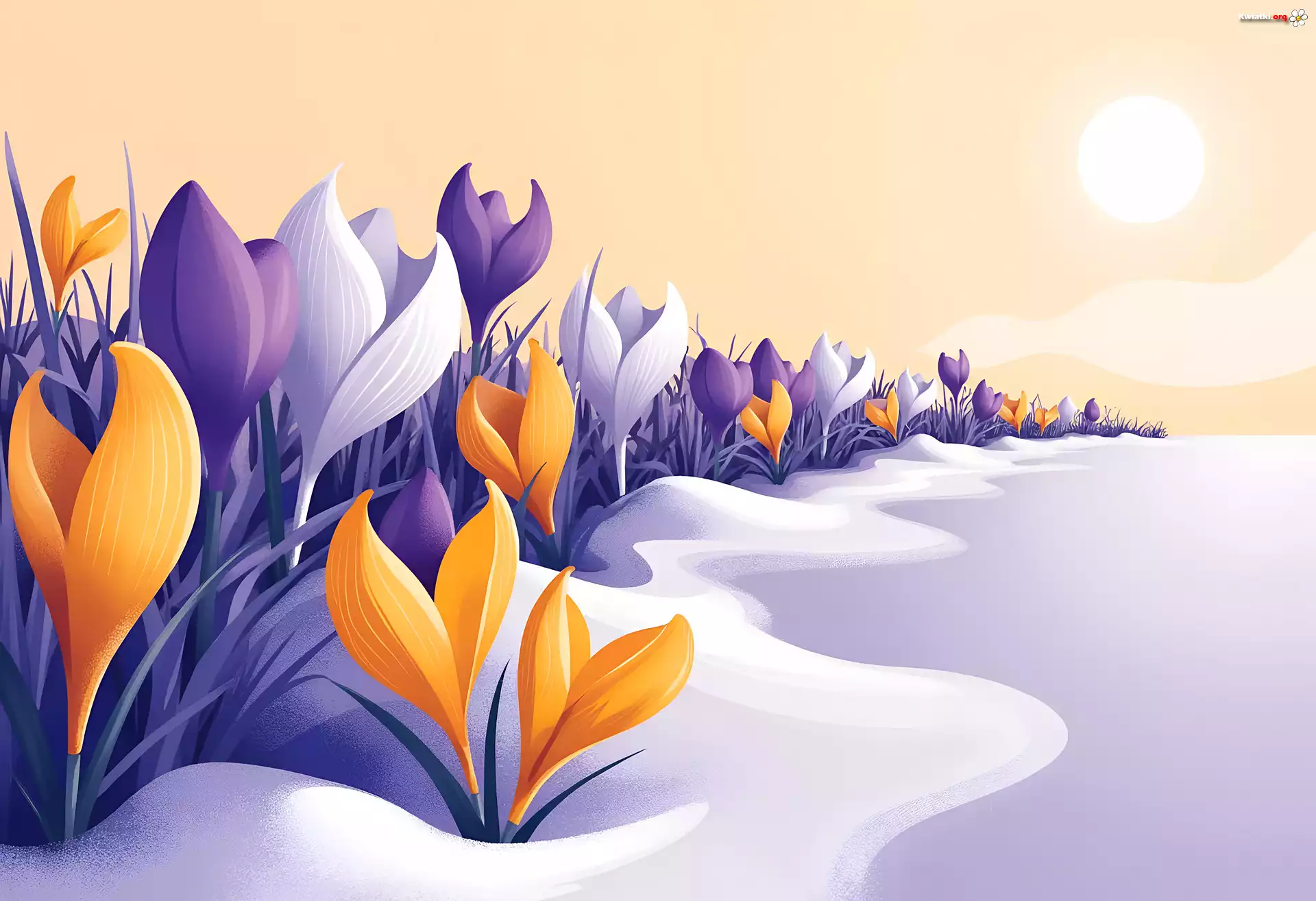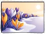 Zima, Kwiaty, Krokusy, Śnieg, Grafika - Zdjęcia