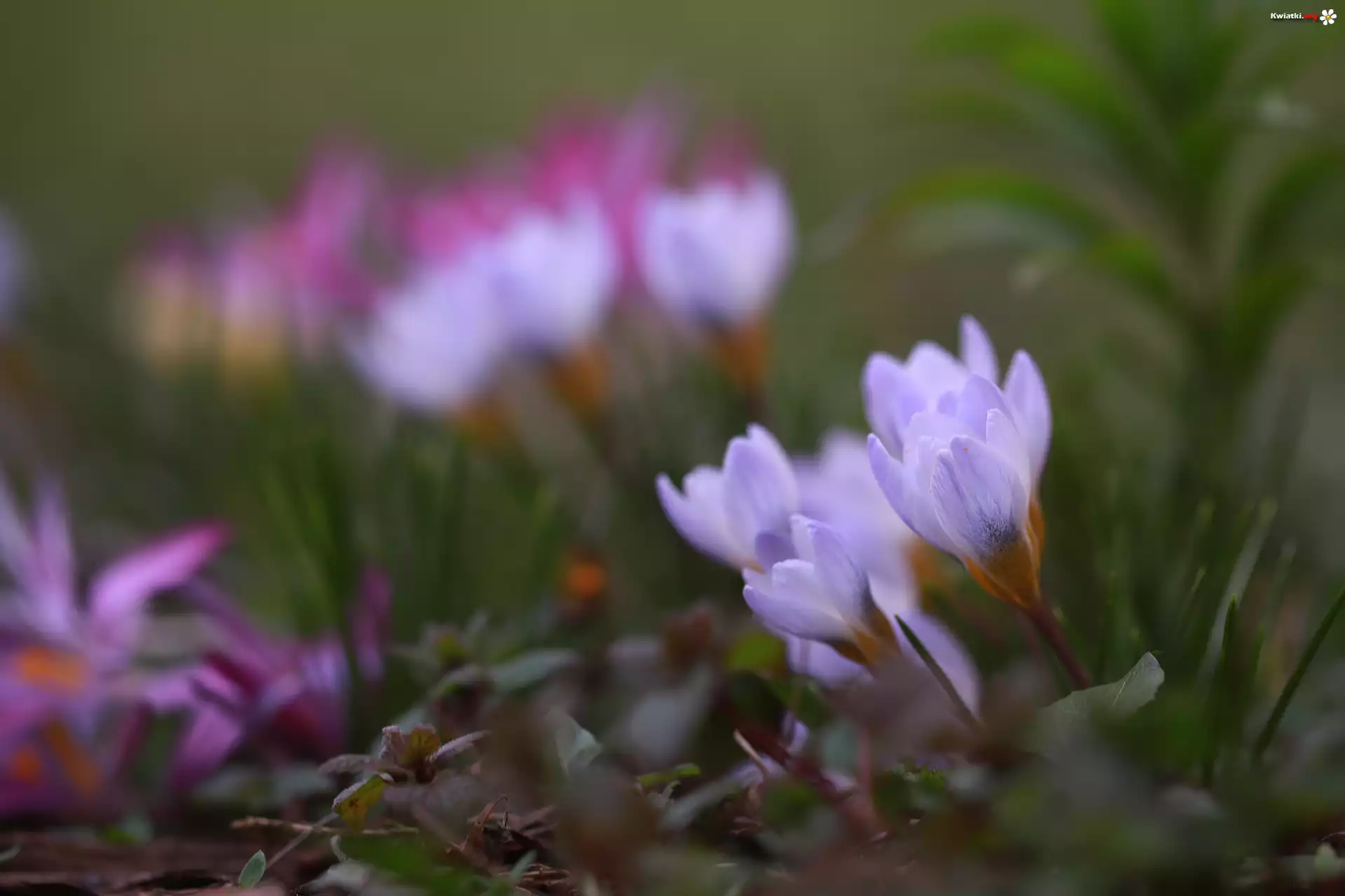 Kwiat Krokusy, Jasnofioletowe, Pochylone, Kwiaty