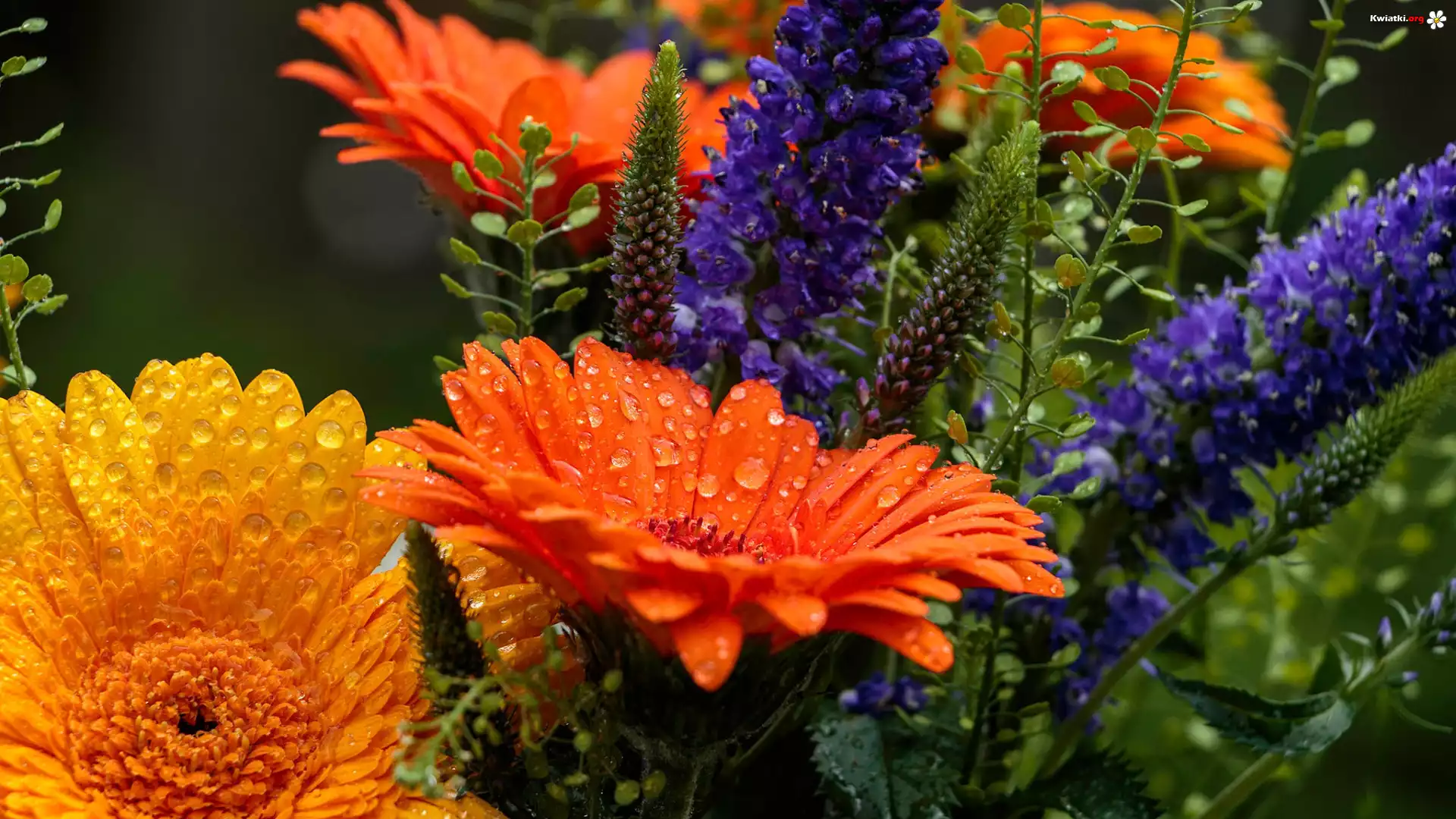 Kwiat Kwiaty, Bukiet, Gerbery, Krople, Rosa