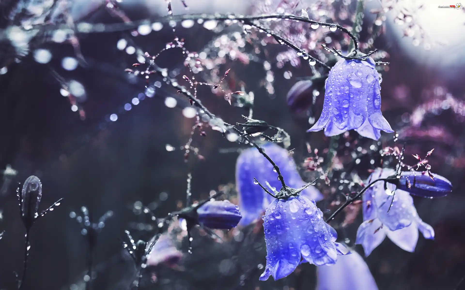 Kwiaty, Dzwonki, Krople, Wody - Zdjęcia