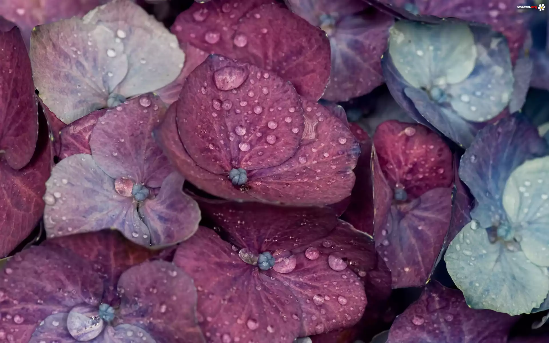 Kwiaty, Hortensji, Krople, Wody - Zdjęcia