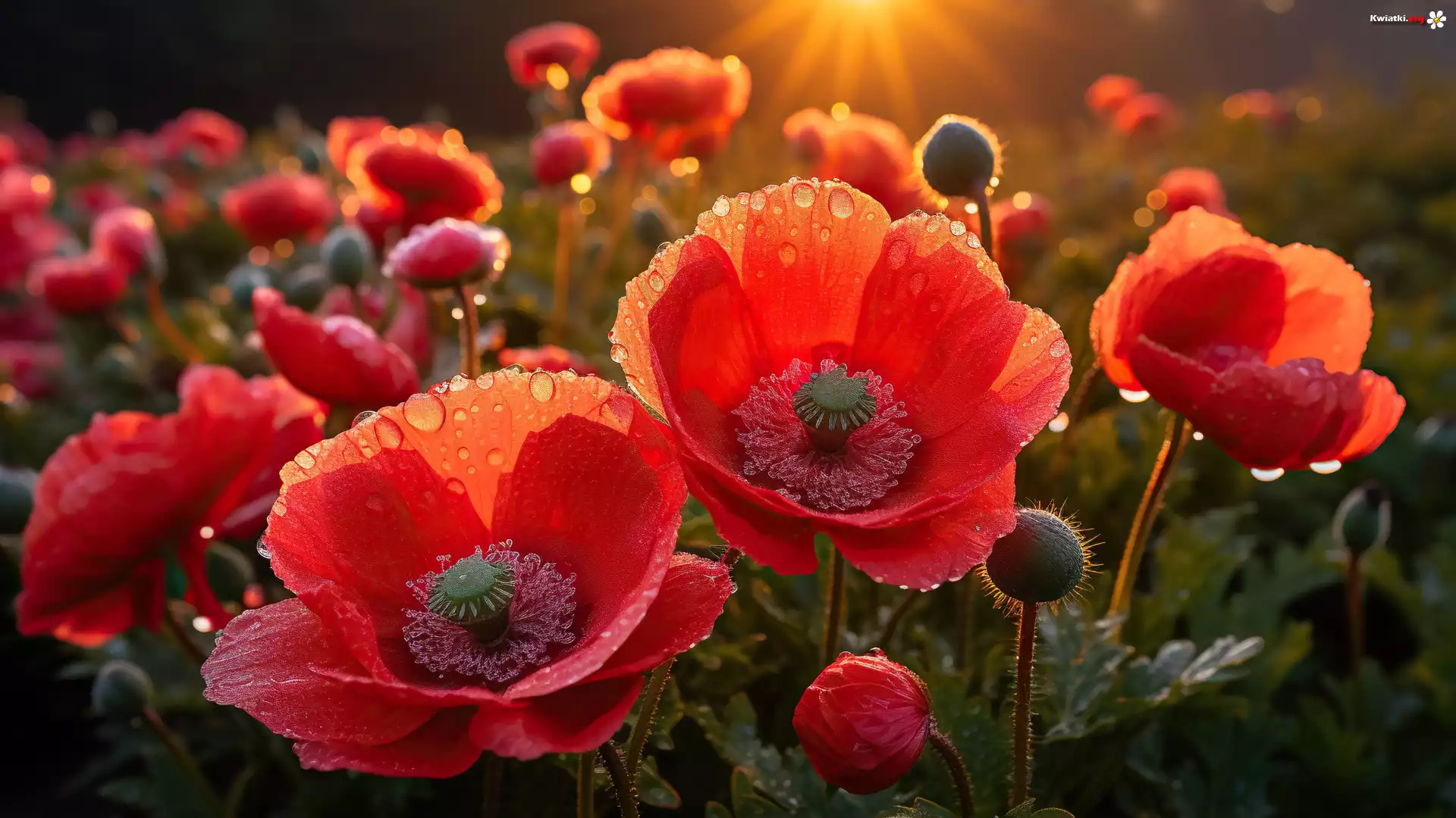 Kwiaty, Maki, Krople - Zdjęcia