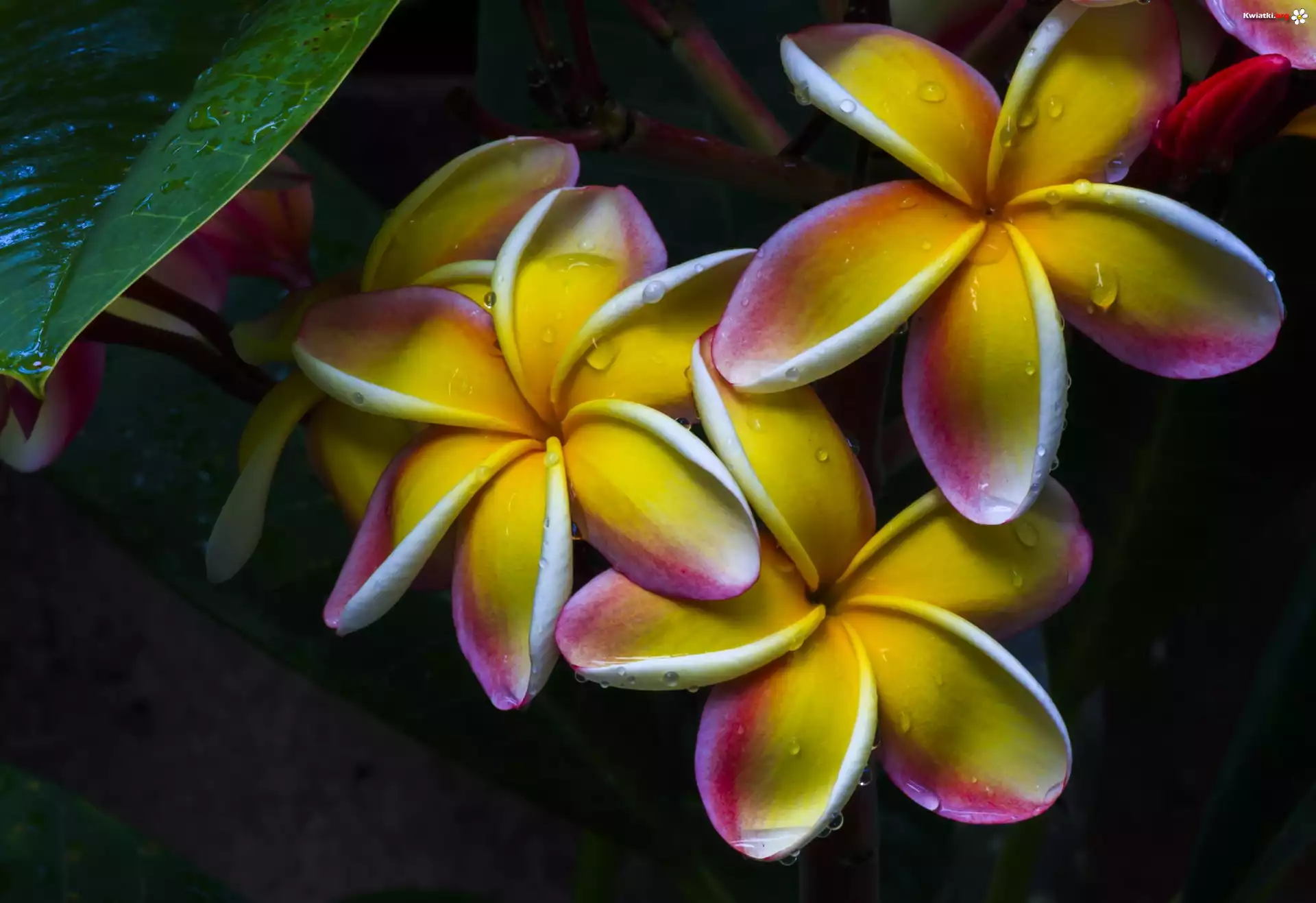 Kwiaty, Plumeria, Krople, Deszczu - Zdjęcia